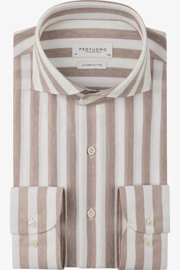 Profuomo Japanese Knitted Linnen Overhemd rood, Gestreept Prijzen
