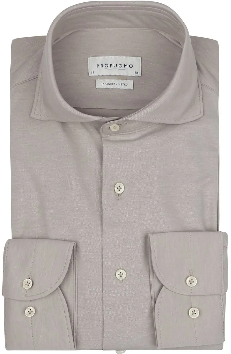 Profuomo Japanese Knitted Overhemd Melange Beige