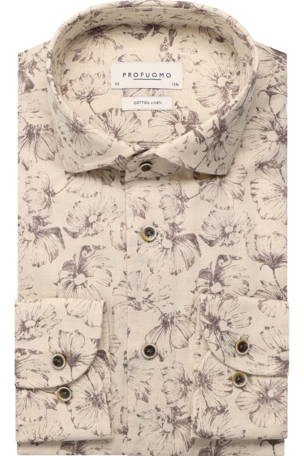 Profuomo Linnen Overhemd beige, Bloemen Prijzen