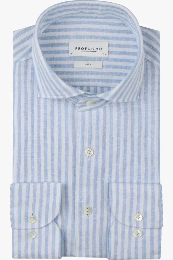 Profuomo Linnen Overhemd blauw, Gestreept Prijzen