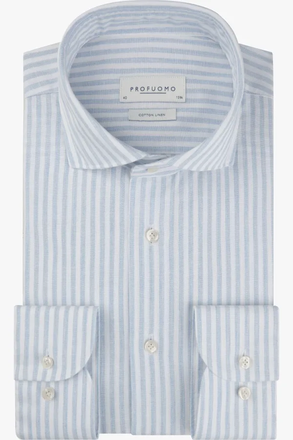 Profuomo Linnen Overhemd blauw, Gestreept Prijzen