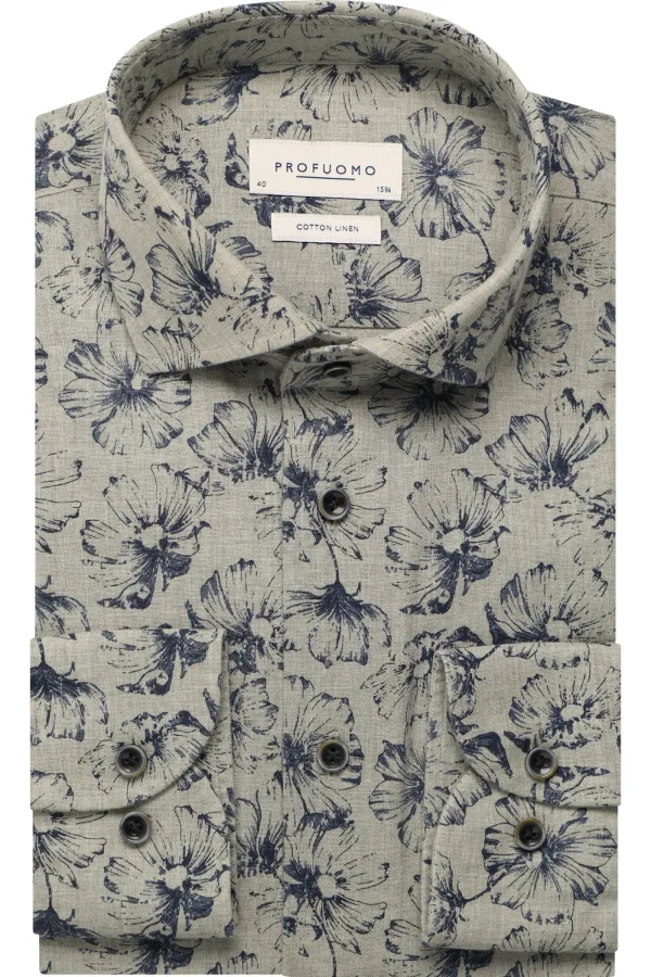 Profuomo Linnen Overhemd groen, Bloemen Prijzen
