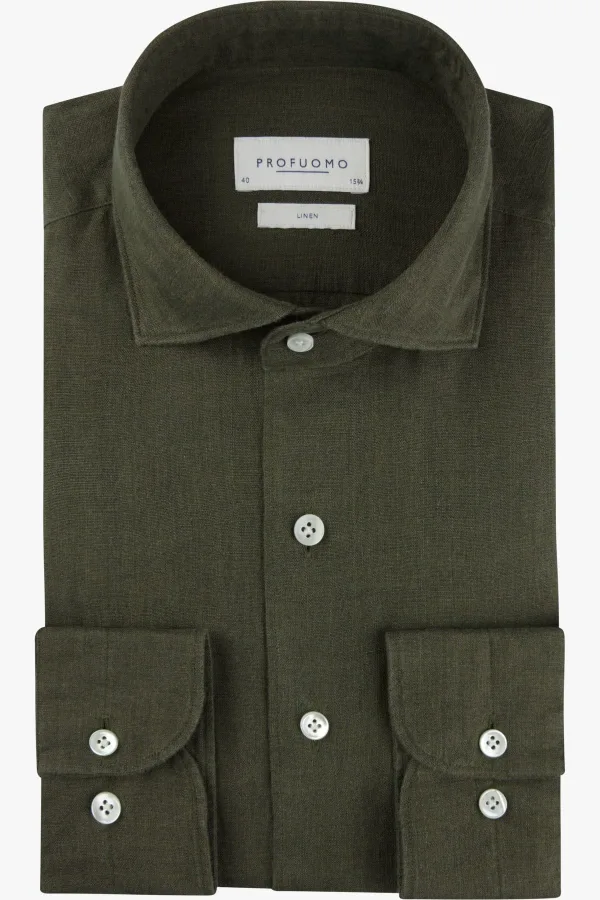 Profuomo Linnen Overhemd groen, Effen Prijzen