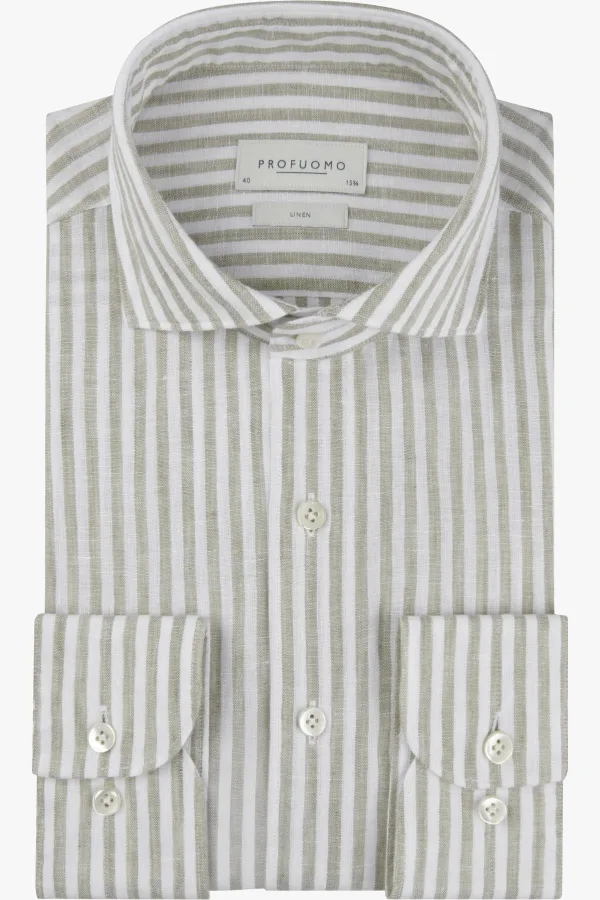 Profuomo Linnen Overhemd groen, Gestreept
