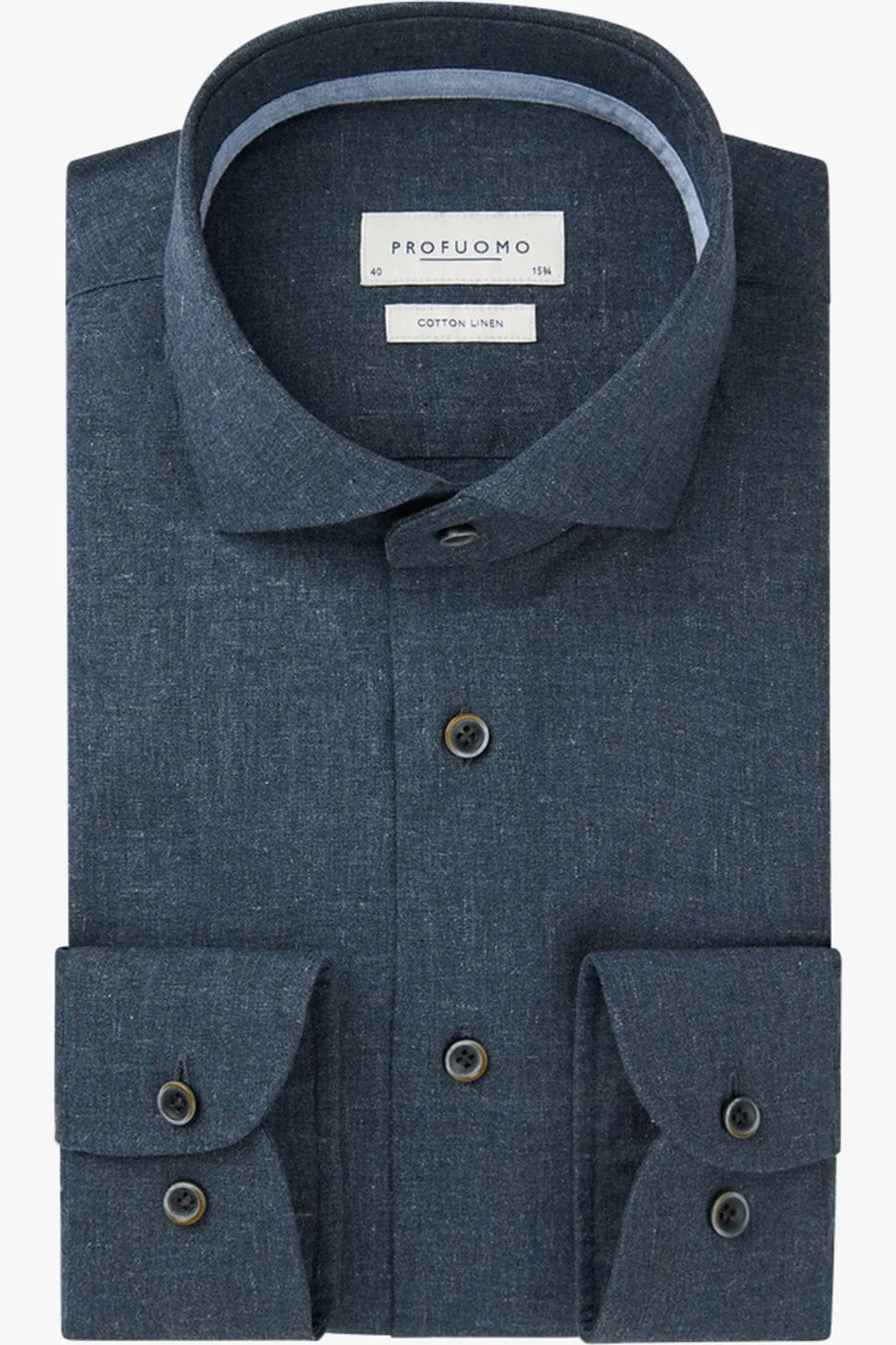 Profuomo Linnen Overhemd Marine, Effen Prijzen