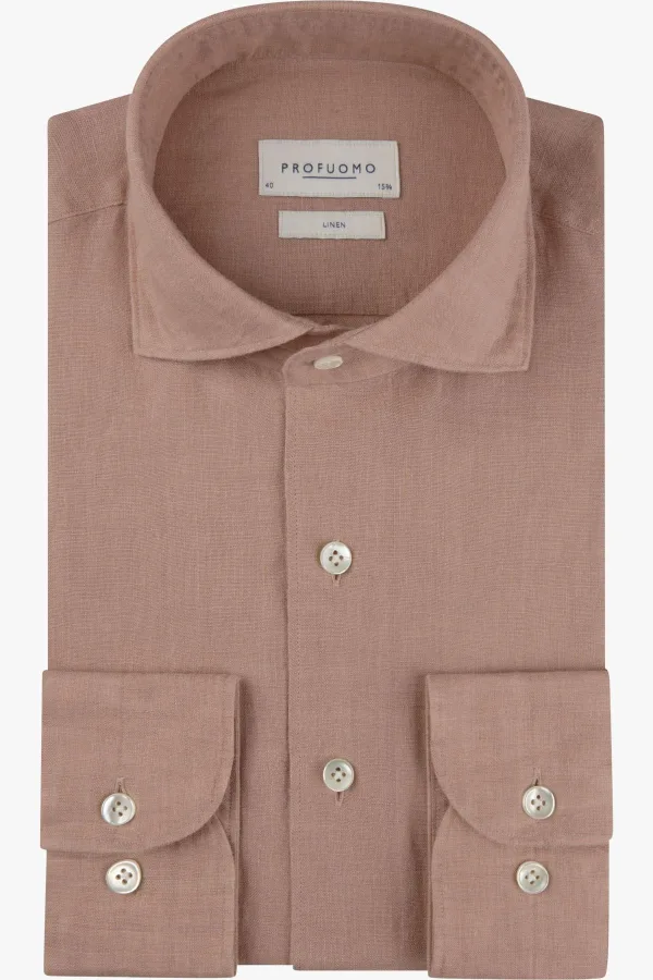 Profuomo Linnen Overhemd roze, Effen