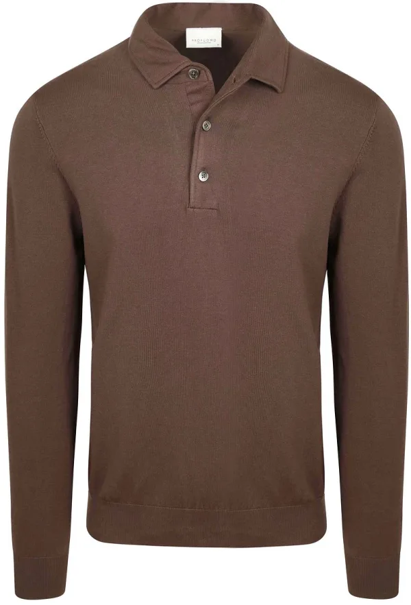 Profuomo Longsleeve Poloshirt Luxury Basic Bruin