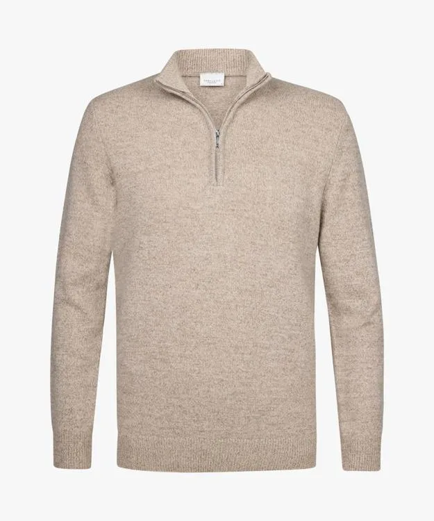 Op zoek naar hoge kwaliteit Heren Truien & sweaters om je kledingkast mee op te vullen? Met deze Trui van Profuomo heb je altijd een goed Trui in huis. De Profuomo Half Zip Pullover Wol Blend Sand is heel geschikt!Profuomo Half Zip Pullover Wol Blend Sand in de kleur Blauw met een pasvorm Modern-fit is gemaakt van Nylon en Wol met een Melange en Effen dessin en Lange mouw