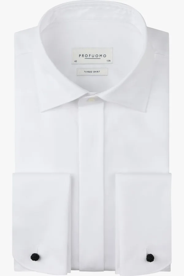 Profuomo slim fit heren smoking overhemd dubbele manchet, twill, wit