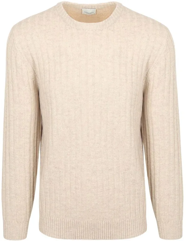 Profuomo Pullover Rib Wol Blend Sand Prijzen