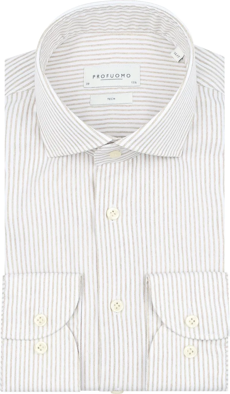 Profuomo Shirt Extra Lange Mouwen Travel Streep Beige Prijzen