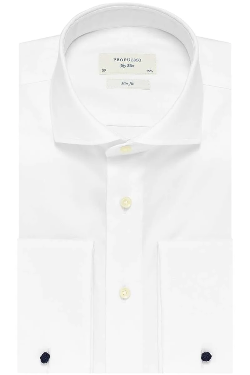 Profuomo Sky Blue Slim Fit Overhemd wit, Effen Prijzen