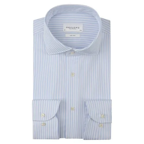 Profuomo slim gestreepte casual overhemd lichtblauw