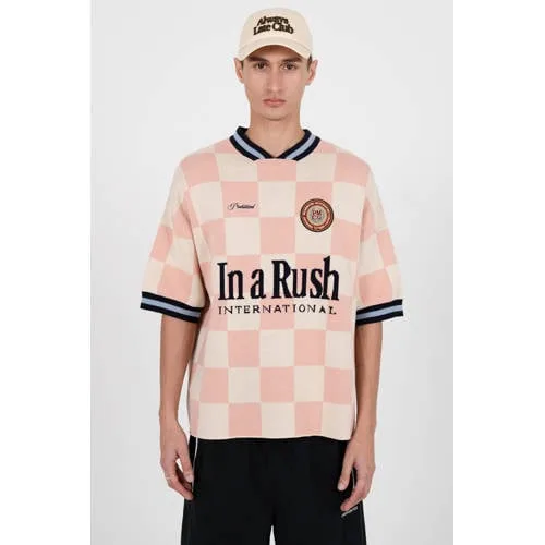 Prohibited oversized geruit T-shirt roze gebreid