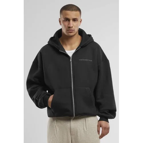 Dit vest van Prohibited 10119 Zip-Hoodie heeft een capuchon en lange mouwen. Dit vest heeft een ritssluiting en een backprint. De pasvorm is boxy, met zakken aan de voorkant en geribde boorden.