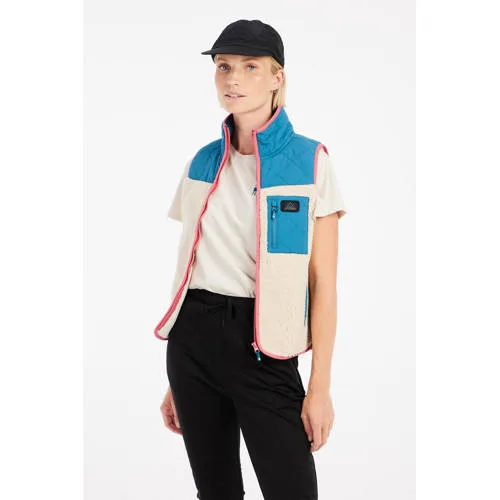 Deze jas van Protest is een mouwloze bodywarmer met opstaande kraag. De ecru met blauw en roze kleurcombinatie zorgt voor een frisse uitstraling. Voorzien van een ritssluiting, borstzak en zakken aan de voorkant. Ideaal voor de lente.