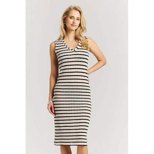 Protest gestreepte midi jurk crochet ecru