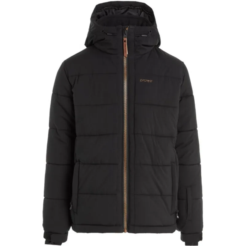 Protest Prtkimey Junior Ski-Jas Dit is de Prtkimey JR van Protest. Deze mooie ski- en snowboardjas combineert street edge met functionaliteit. De licht glanzende stof van deze jas ziet er niet alleen fantastisch uit, maar heeft ook nog eens 10.000 mm waterdichtheid en 10 g ademend vermogen. Dit betekent dat water van buitenaf wordt tegengehouden en transpiratievocht van binnenuit naar buiten kan. De goudkleurige rits is een klein detail die jas nog mooier maakt. Protest Zwarte Junior Gewatteerde Winterjas De jas is bovendien gewatteerd, wat voor extra warmte zorgt doordat de lucht die tussen de stiksels wordt vastgehouden opwarmt. De zijzakken zijn voorzien van een ritssluiting en onder de mouw zit een liftpashouder. Verder heeft de jas een vaste capuchon, een kraag die aan de binnenkant is gevoerd met heerlijk zacht teddybont en lycra binnenmanchetten met duimgaten bij de polsen Die comfortabel zitten en warmte buiten houden. Bij