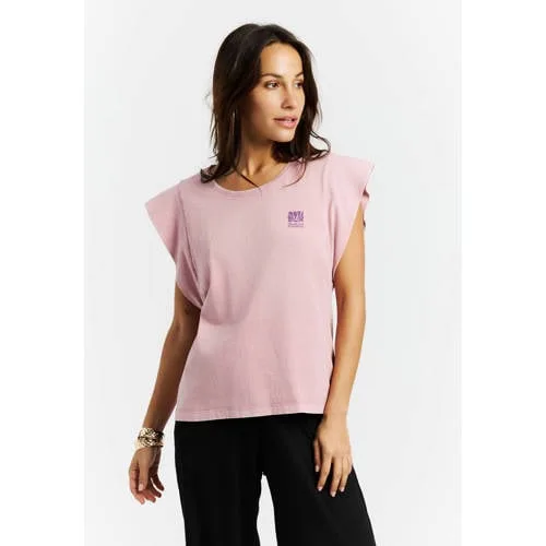 Het Protest dames T-shirt PRTCandi is een eigentijds shirt met een casual uitstraling. De pigment-dyed finish en stone wash geven de roze kleur een gedragen look, waardoor het T-shirt een subtiel gewassen effect krijgt. De relaxte fit en middellange lengte zorgen voor ruimte om te bewegen, terwijl de ronde hals en kapmouwen het geheel een vrouwelijke en ontspannen uitstraling geven. Gemaakt van 100% katoen voelt de stof zacht en soepel aan op de huid, prettig voor zonnige dagen of actieve momenten.Details van het PRTCandi T-shirt Relaxte pasvorm voor een casual uitstraling en comfortabel gevoel Pigment-dyed en stone washed voor een gewassen, gedragen look Kapmouwen met subtiele ruches voor extra accent bij de schouders Backprint en printopdruk die direct in het oog vallen Gemaakt van 100% katoen, zacht en ademend voor dagelijks dragen Wasbaar op 30 graden, eenvoudig te onderhouden Roze kleur die goed te combineren is met denim, shorts of een rokCasual outfit voor elke dagDit T-shirt past goed in een dagelijkse garderobe. Combineer het met een jeans en sneakers voor een relaxte dag, of met een korte broek voor een lente look. De backprint en de ruches zorgen voor een verzorgde, casual uitstraling.Protest als vertrouwde keuzeProtest staat bekend om kleding met een sportieve en actuele uitstraling, met oog voor comfort. De collecties sluiten aan bij een actieve levensstijl, of je nu op vakantie bent, een dag de stad in gaat of gewoon thuis ontspant. Met dit T-shirt haal je een modern en betrouwbaar basisitem in huis.Een veelzijdig T-shirt dat je vaak uit de kast pakt op zonnige, ontspannen dagen.