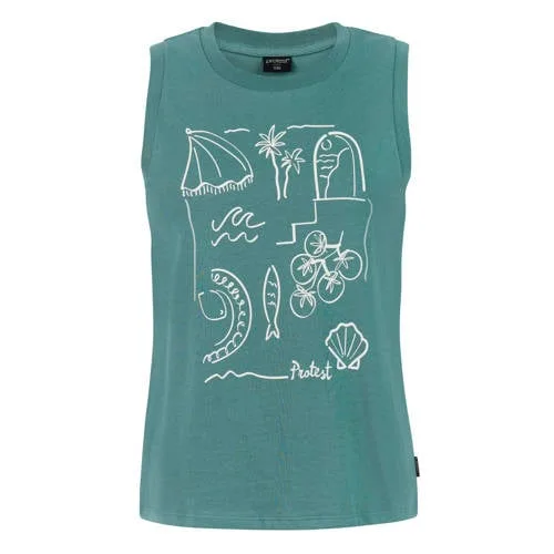 De zomer laat zich van de beste kant zien met deze luchtige singlet van Protest. Deze Protest top heeft een regular fit en voelt dankzij het 100% katoenen materiaal zacht en ademend aan op de huid. Ideaal voor warme dagen, of je nu onderweg bent naar het strand, een stadswandeling maakt of gewoon ontspant in de tuin. De mouwloze pasvorm en ronde hals geven een open, frisse uitstraling, terwijl de printopdruk zorgt voor een moderne Protest-look.Frisse singlet met zomerse details Gemaakt van 100% katoen voor een zachte, ademende touch Mouwloos model met rechte schouderlijn voor veel bewegingsvrijheid Ronde hals voor een tijdloze en makkelijke pasvorm Regular fit die comfortabel valt langs het lichaam Printopdruk voor een herkenbare, speelse Protest-stijl Zonder sluiting en zonder zakken voor een rustig, clean designVeelzijdig voor zomerse dagenDe singlet is gemakkelijk te combineren met een korte broek, luchtige rok of je favoriete jeans. Licht van gewicht en makkelijk aan te trekken, zodat je direct klaar bent voor een dag buiten, een wandeling of een casual dag thuis.Protest: eigentijdse stijl voor elke dagProtest staat bekend om kleding die is afgestemd op een actief leven, met oog voor comfort en een moderne uitstraling. De collecties zijn ontworpen met aandacht voor draaggemak, zodat je je vrij kunt bewegen en er tegelijk verzorgd uitziet.Een comfortabele singlet die je garderobe klaar maakt voor lange, zonnige dagen.