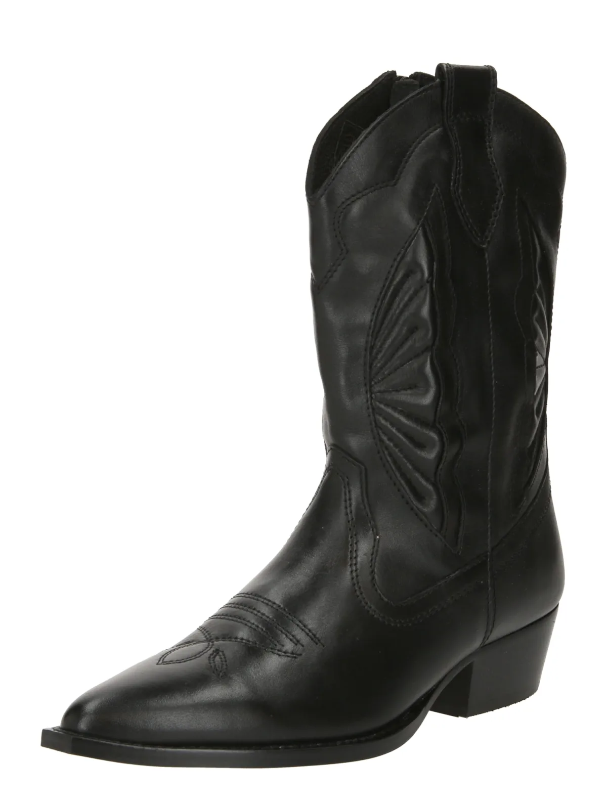 Design: Ritszakken aan de zijkant, Versterkte hak; Type sluiting: Ritssluiting; Type hak: Blokhak; Materiaal: Leer; Motief: Effen; Materiaal: Glad leer; Schoenneus: Spitse neus; Extra's: Stiksels, Flexibele zool; Hakhoogte: Middelhoge hak (3-7 cm)