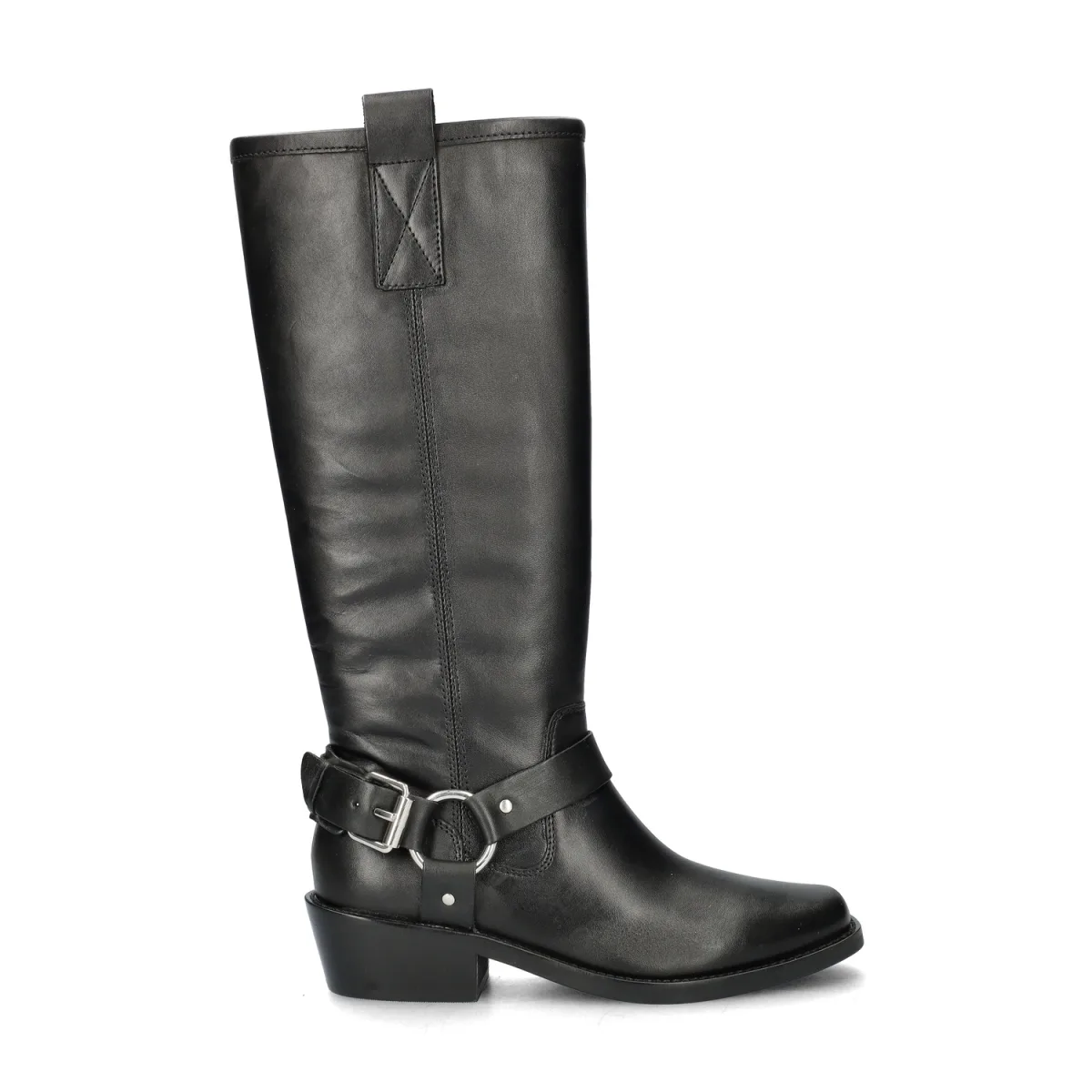 PS Poelman Sidonia dames bikerboot Deze 'Sidonia' boots van PS Poelman zijn helemaal on-trend. Uitgevoerd in gladleer met stoere zilverkleurige gespen rond de enkel. De schacht is licht gewatteerd en gevoerd met textiel. Het model is voorzien van een rits. Bevat een leren voetbed. Voorzien van een western blokhak van 4,5 cm en een rubberen loopzool.