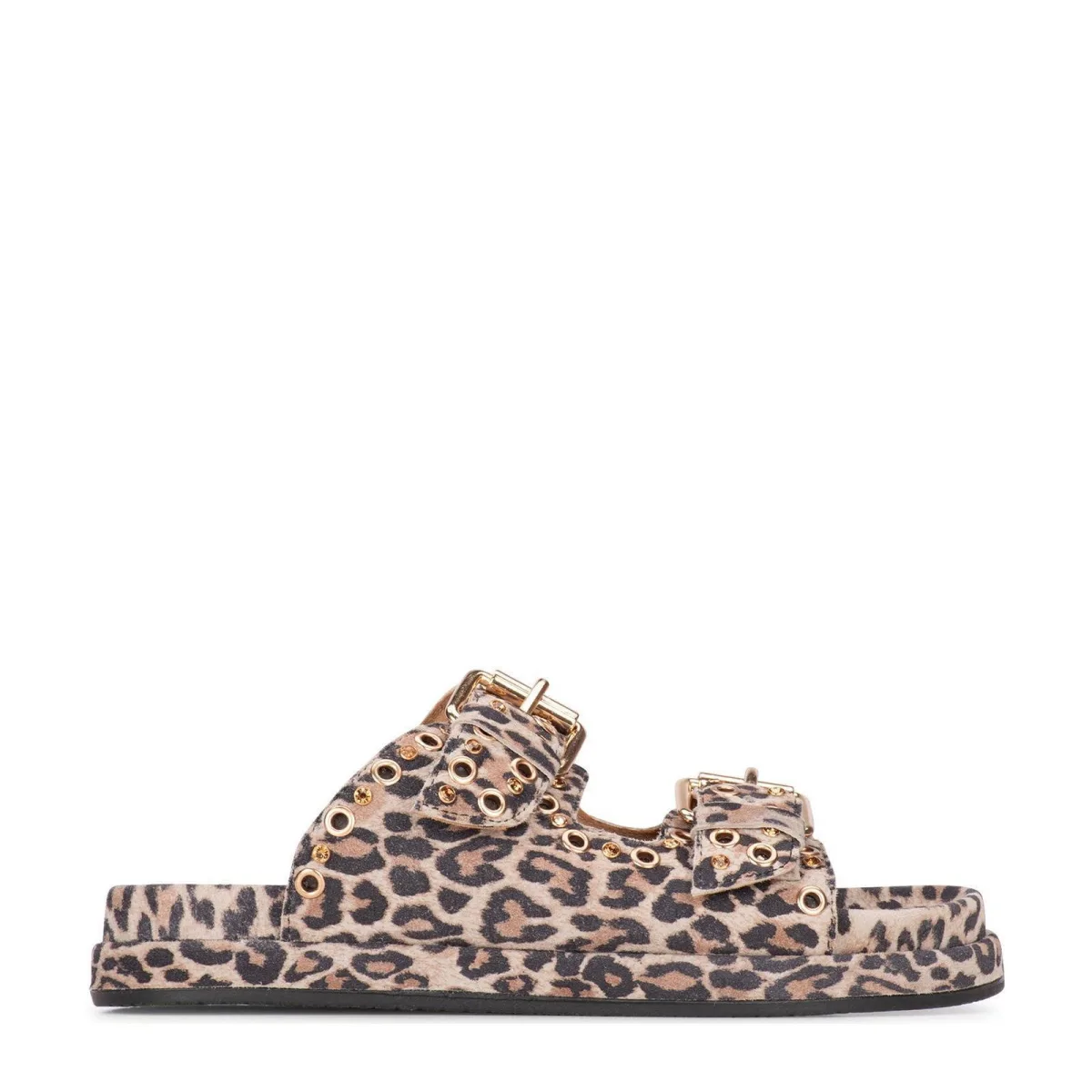 Design: Elastische inserts; Type sluiting: Slip; Materiaal: Leer; Motief: Dierenprint; Plateau: Met plateau; Materiaal: Glad leer; Schoenneus: Open toe; Extra's: All-over patroon; Hakhoogte: Platte hak (0-3 cm)