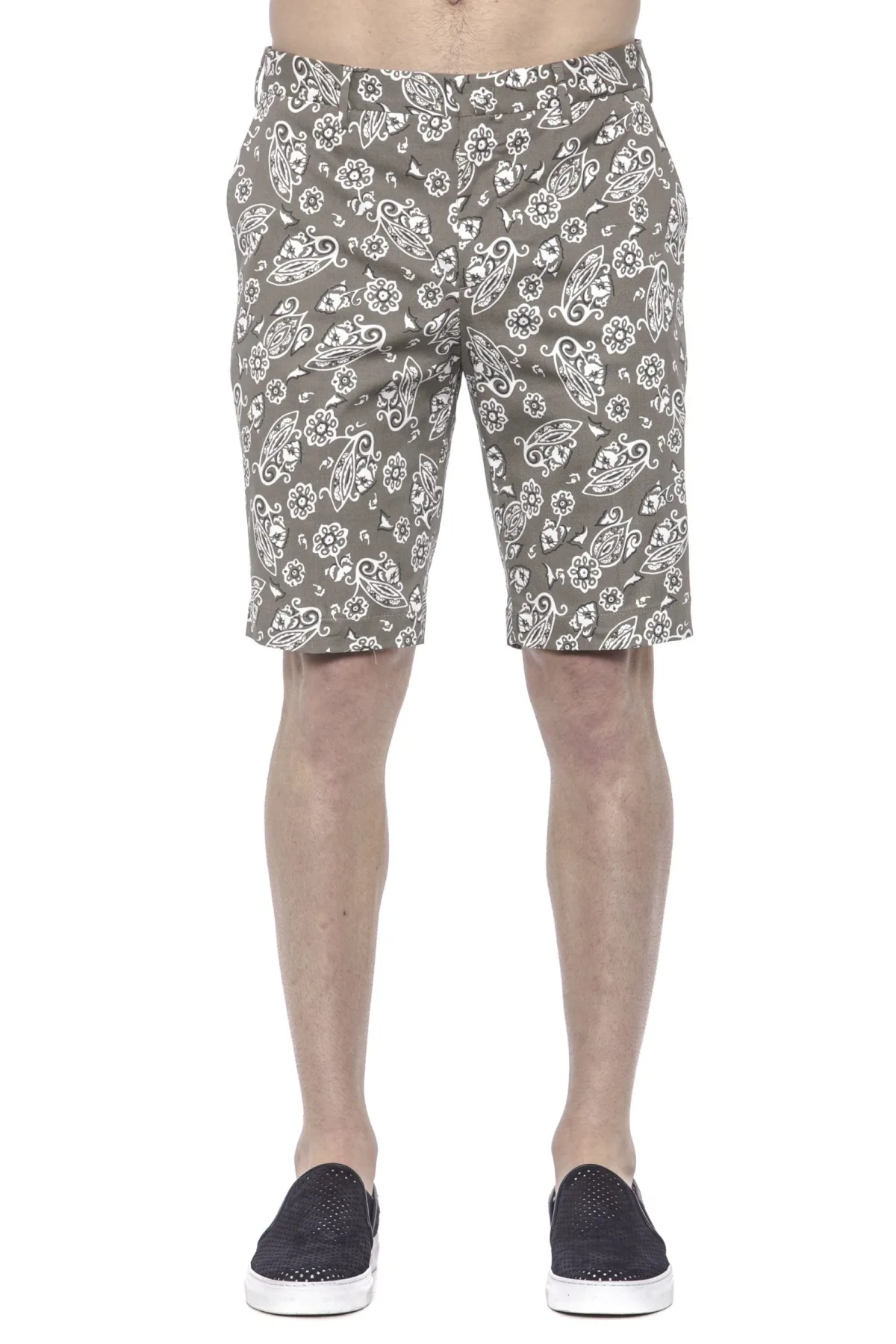 Heren Bermuda's. Gedessineerde stof. Sluiting met haak en rits. Zijzakken. Zakken met band aan de achterkant.