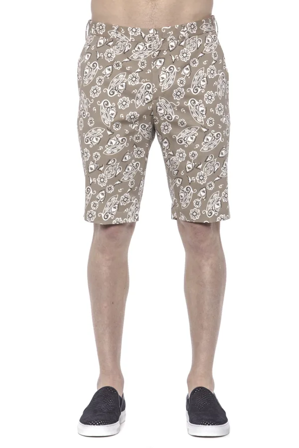 Heren Bermuda's. Gedessineerde stof. Sluiting met haak en rits. Zijzakken. Zakken met band aan de achterkant.