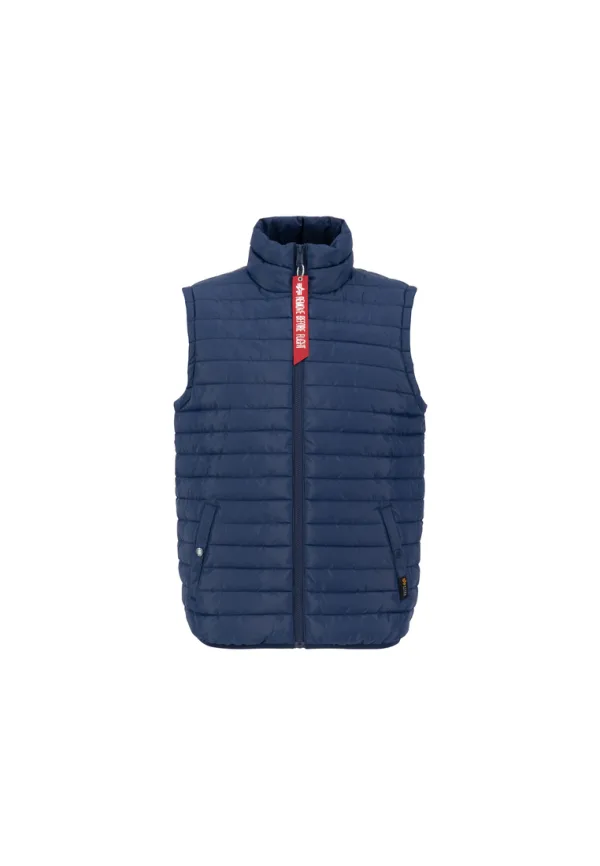 De Puffer Light Vest van Alpha Industries is een lichte, warme bodywarmer in sportief ontwerp met een Slim Fit. Het duurzame polyester ripstop-materiaal beschermt tegen wind, terwijl de synthetische donsvoering warmte biedt. De bodywarmer heeft elastische randen, twee binnenzakken en buitenzakken met drukknopen voor praktische opbergruimte. Het RBF-label en het Logo Loop Label benadrukken de opvallende stijl van Alpha Industries. Ideaal voor koele dagen.