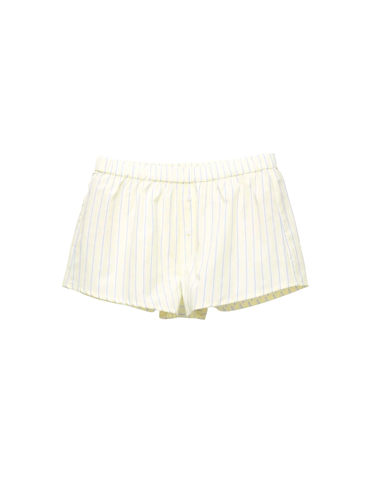 Design: Gevoerde zoom/rand, Elastische taille/zoom; Materiaal: Katoen; Motief: Gestreept; Details: Gedrapeerd; Extra's: All-over patroon, Lichte stof; Lengte: Kort/mini; Pasvorm: Regular; Taillehoogte: Mid waist