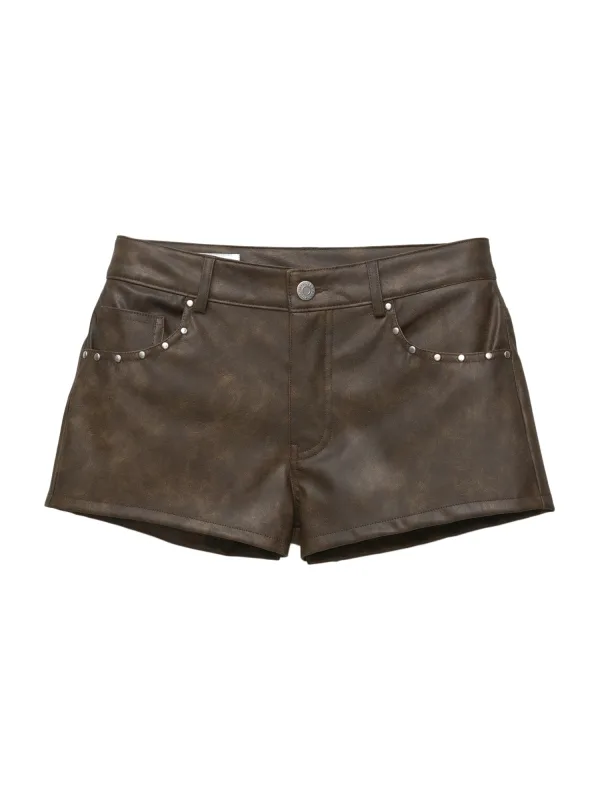 Design: Gevoerde zoom/rand, Ritssluiting, 5-pocket-style; Type sluiting: Ritssluiting; Materiaal: Imitatieleder; Motief: Effen; Extra's: Studs, Gladde stof, Riemlussen; Lengte: Kort/mini; Pasvorm: Regular; Taillehoogte: Mid waist