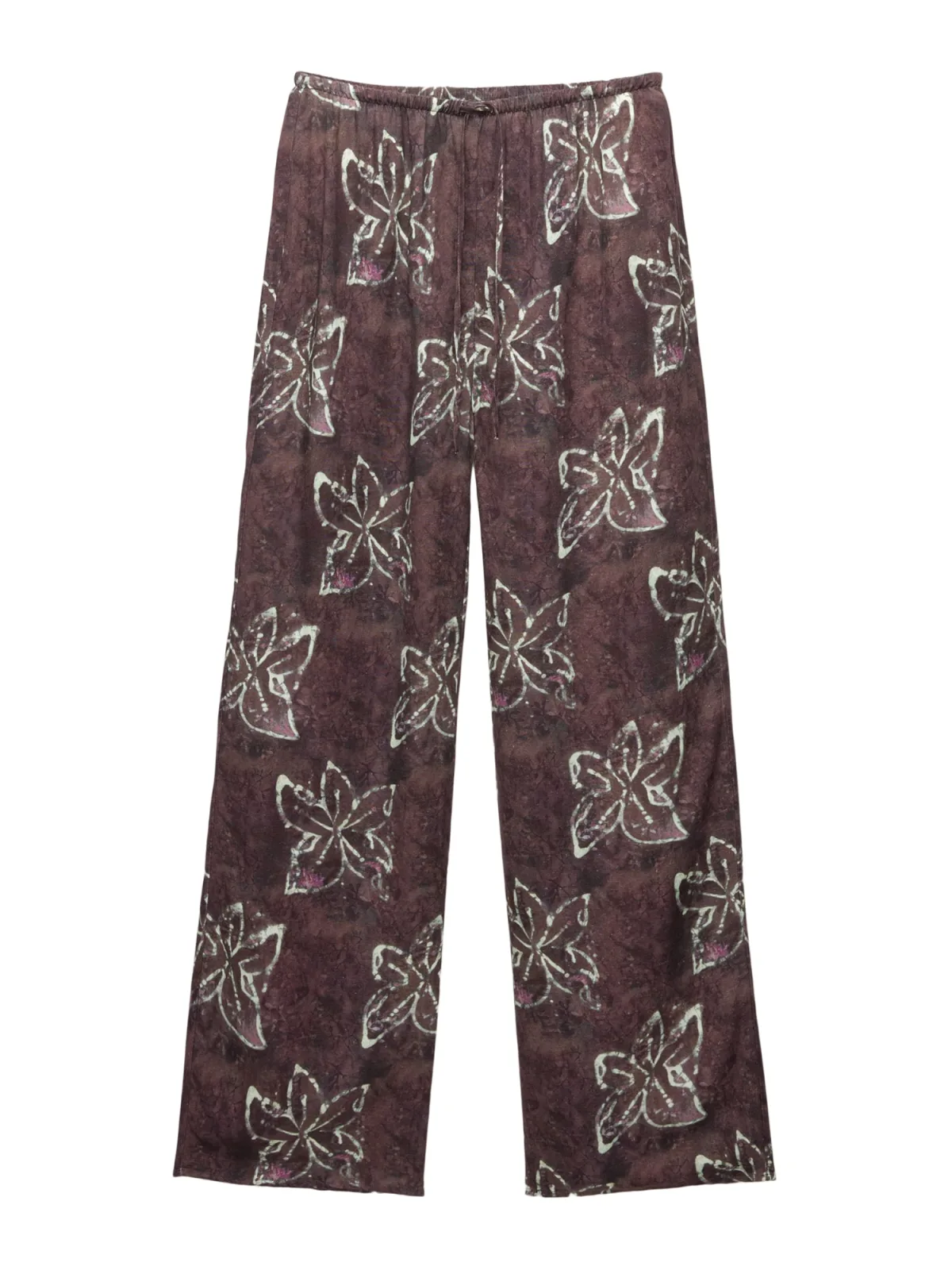 Pull&Bear Broek ‘HIBISCUS’ chocoladebruin / lila / aubergine / wit