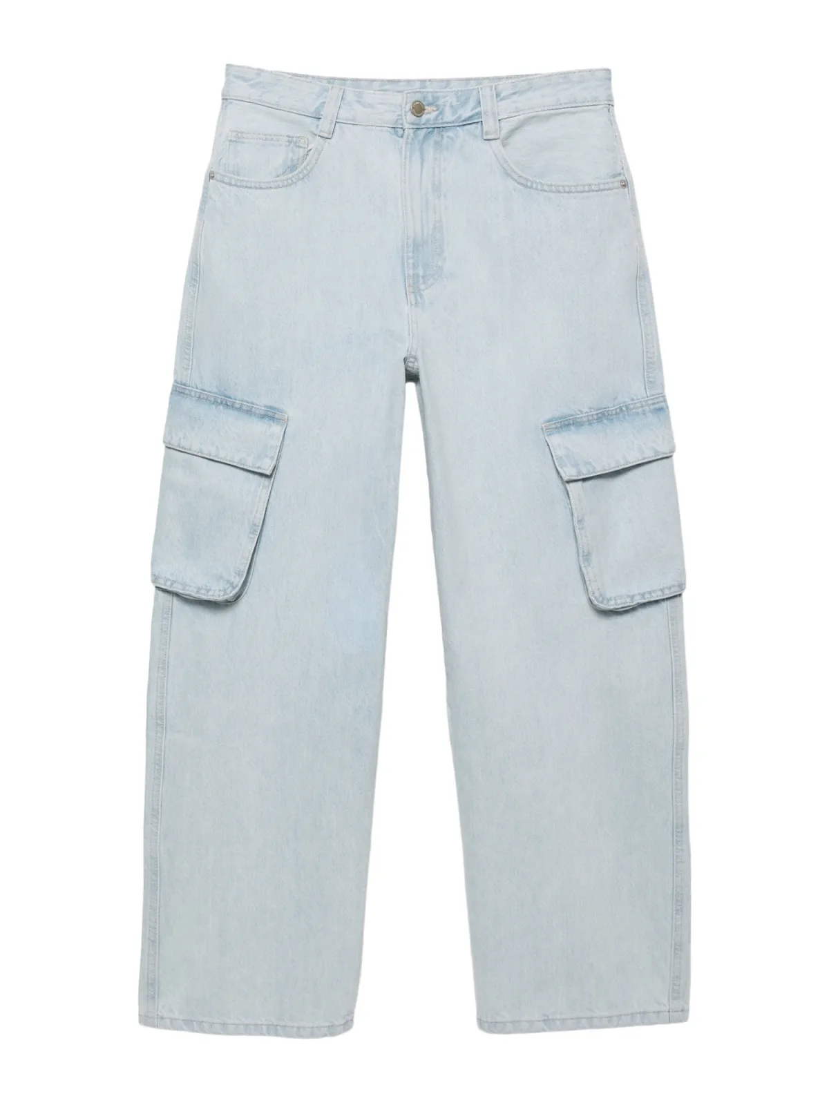 Design: Gevoerde zoom/rand, Ritssluiting, Cargozak, Achterzak, Zakken aan de zijkant; Materiaal: Denim; Motief: Effen; Extra's: Contrasterende naden, Vaste grip, Riemlussen; Wassing: Light washed; Lengte: Lang/maxi; Pasvorm: Baggy; Taillehoogte: Mid waist