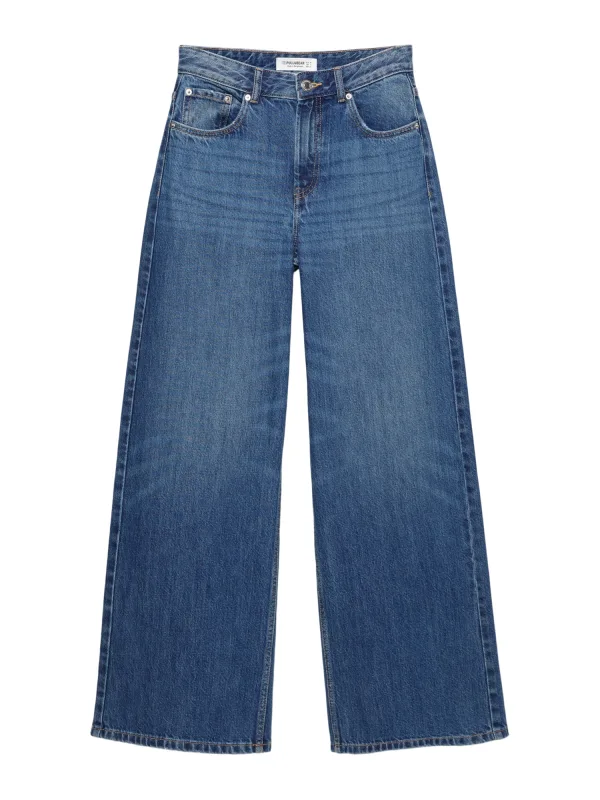 Design: Ritssluiting, 5-pocket-style; Type sluiting: Ritssluiting; Materiaal: Denim; Motief: Effen; Extra's: Contrasterende naden, Label patch/label flag; Wassing: Heavy washed; Lengte: Lang/maxi; Pasvorm: Wide leg; Taillehoogte: Mid waist