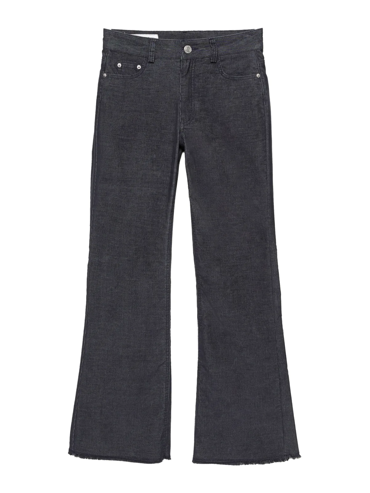 Design: Gefranjerde zoom, Ritssluiting, 5-pocket-style; Type sluiting: Knoopsluiting; Materiaal: Denim; Motief: Effen; Details: Franjes; Extra's: Studs, Met textuur; Wassing: Rinsed/dark washed; Lengte: Lang/maxi; Pasvorm: Flared; Taillehoogte: Mid waist