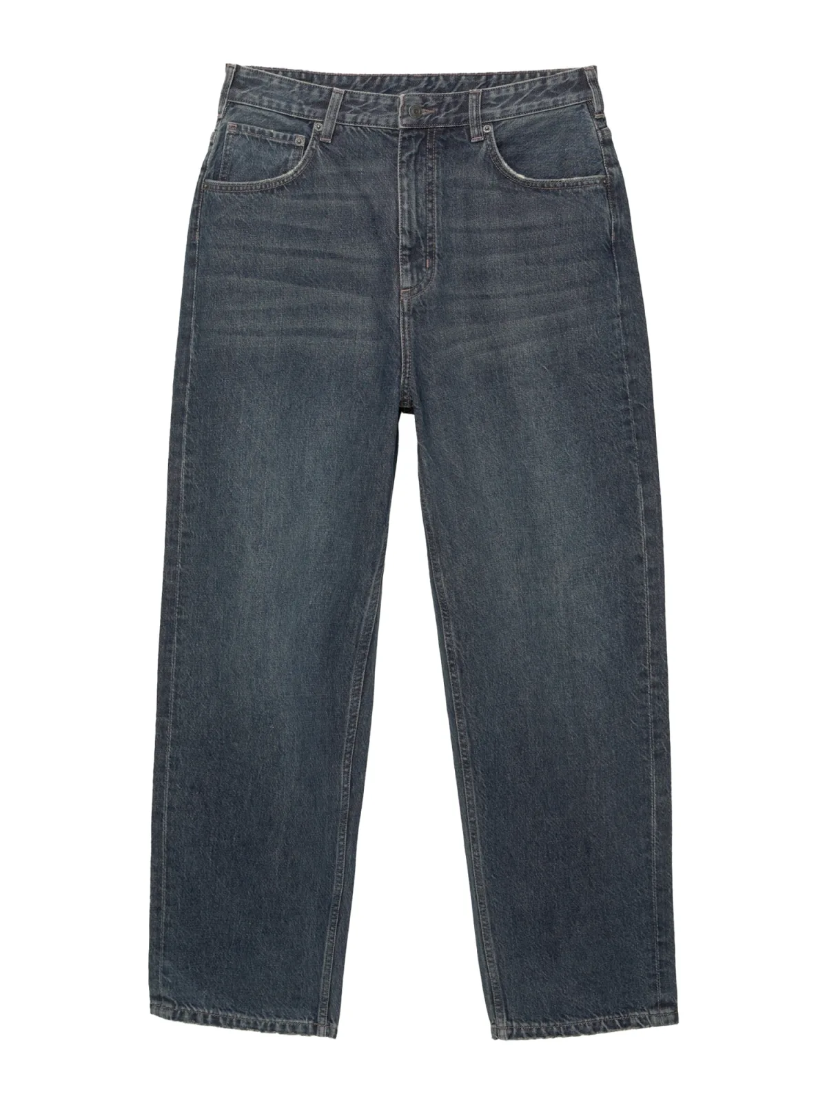 Design: Gevoerde zoom/rand, Ritssluiting, 5-pocket-style, Knop sluiting; Type sluiting: Ritssluiting; Materiaal: Denim; Motief: Effen; Extra's: Studs, Contrasterende naden, Gewassen effect, Vaste grip, Riemlussen; Wassing: Heavy washed; Lengte: Lang/maxi; Pasvorm: Baggy