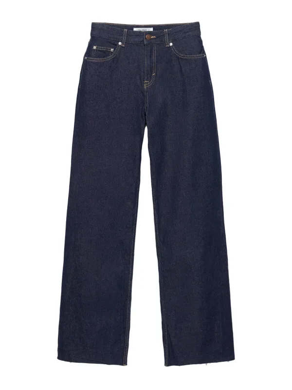 Design: Gefranjerde zoom, Ritssluiting, 5-pocket-style; Type sluiting: Ritssluiting; Materiaal: Denim; Motief: Effen; Extra's: Studs, Contrasterende naden, Label patch/label flag, Vaste grip; Wassing: Rinsed/dark washed; Lengte: Lang/maxi; Pasvorm: Wide leg; Taillehoogte: High waist