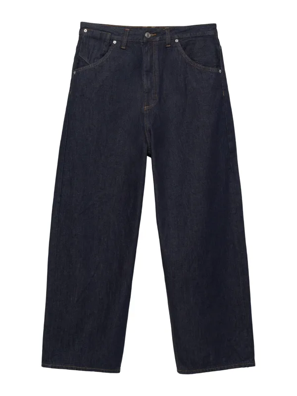 Design: Ritssluiting, 5-pocket-style; Type sluiting: Ritssluiting; Materiaal: Denim; Motief: Effen; Extra's: Contrasterende naden, Vaste grip, Riemlussen; Wassing: Raw/unwashed; Lengte: Lang/maxi; Pasvorm: Losse pasvorm; Pasvorm: Wide leg
