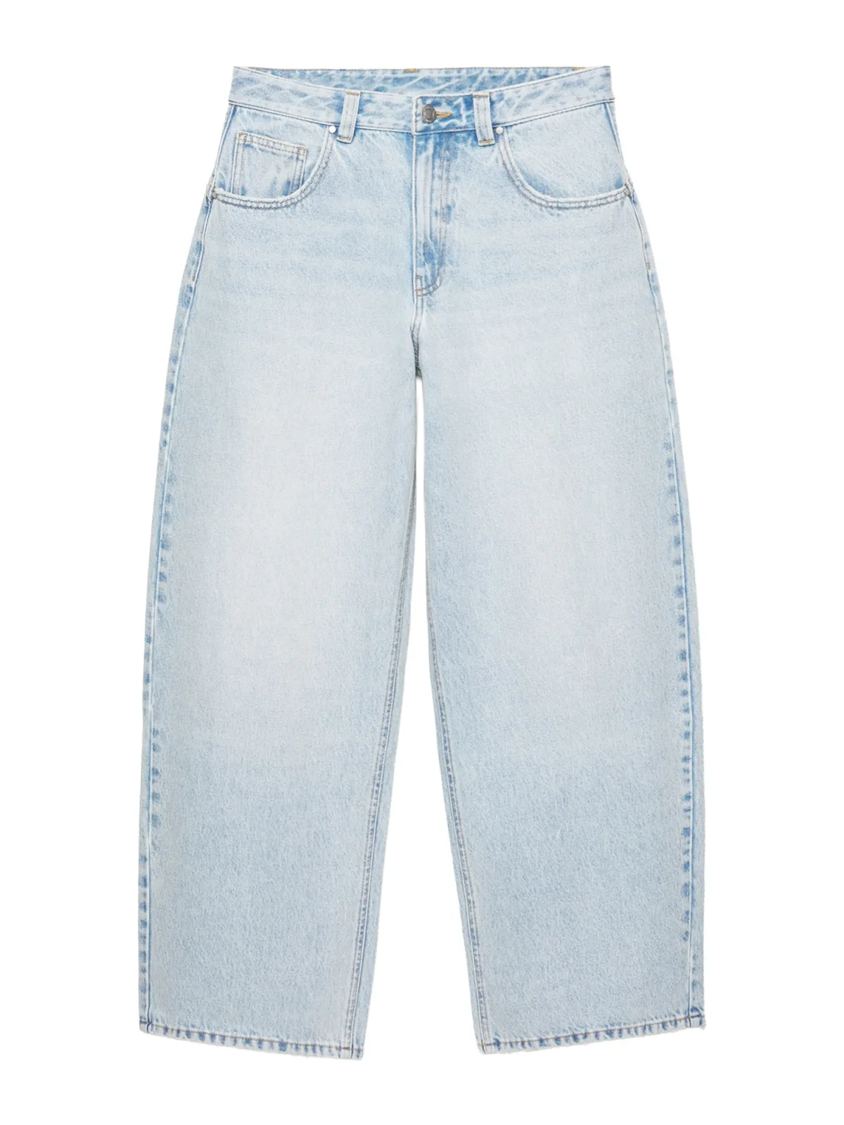 Design: Gevoerde zoom/rand, Ritssluiting, 5-pocket-style; Type sluiting: Ritssluiting; Materiaal: Denim; Motief: Effen; Details: Borduursels, Patches; Extra's: Studs, Contrasterende naden, Label patch/label flag, Vaste grip, Riemlussen; Wassing: Light washed; Lengte: Lang/maxi; Pasvorm: Baggy; Taillehoogte: High waist
