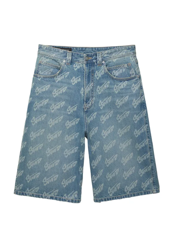 Design: Gevoerde zoom/rand, 5-pocket-style; Type sluiting: Ritssluiting; Materiaal: Denim; Motief: Logoprint; Extra's: All-over patroon, Riemlussen; Lengte: 3/4 lengte; Pasvorm: Baggy