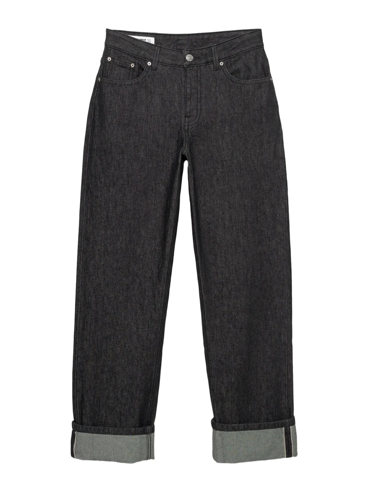 Design: Omgeslagen zoom, Ritssluiting, 5-pocket-style; Type sluiting: Ritssluiting; Materiaal: Denim; Motief: Effen; Extra's: Studs, Label patch/label flag, Op staal naden, Vaste grip, Riemlussen; Wassing: Rinsed/dark washed; Lengte: Lang/maxi; Pasvorm: Loosefit; Taillehoogte: Mid waist