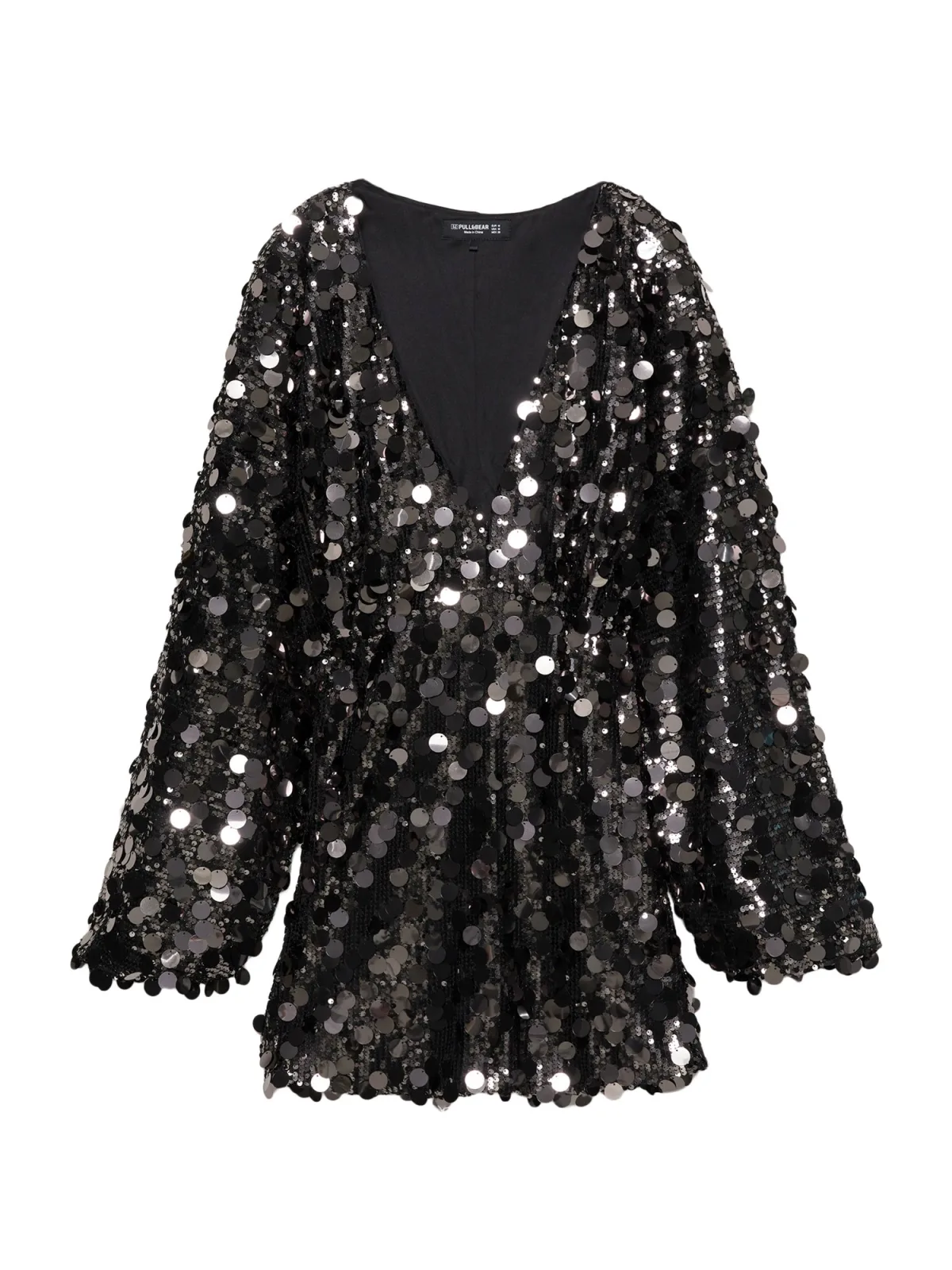 Design: Rechte zoom, Diepe snit/decolleté; Halstype: V-hals; Motief: Effen; Details: Pailletten; Extra's: Glitterend, Applicaties; Lengte: Kort/mini; Snit: Recht; Pasvorm: Normale pasvorm; Armlengte: Lange mouw