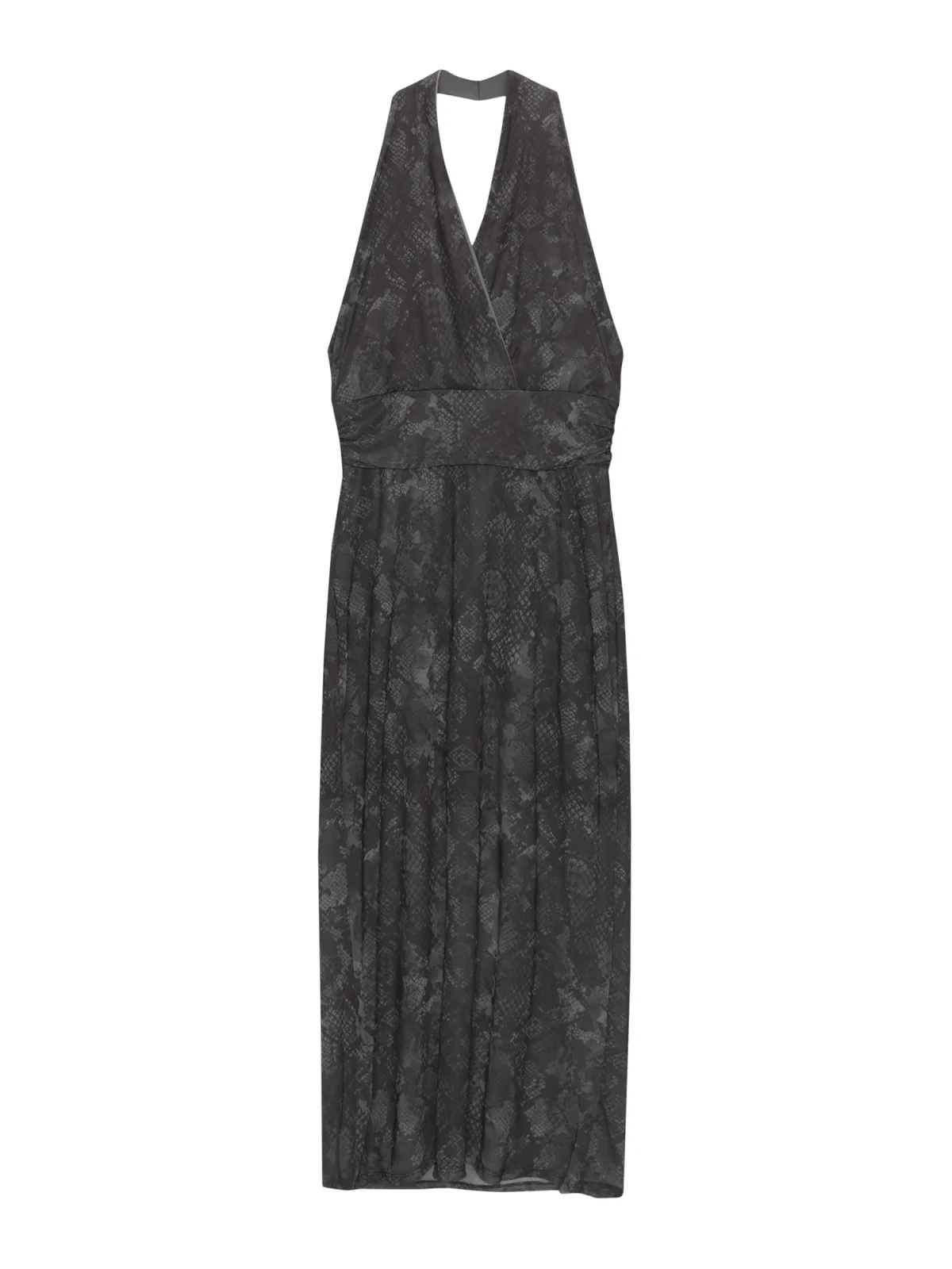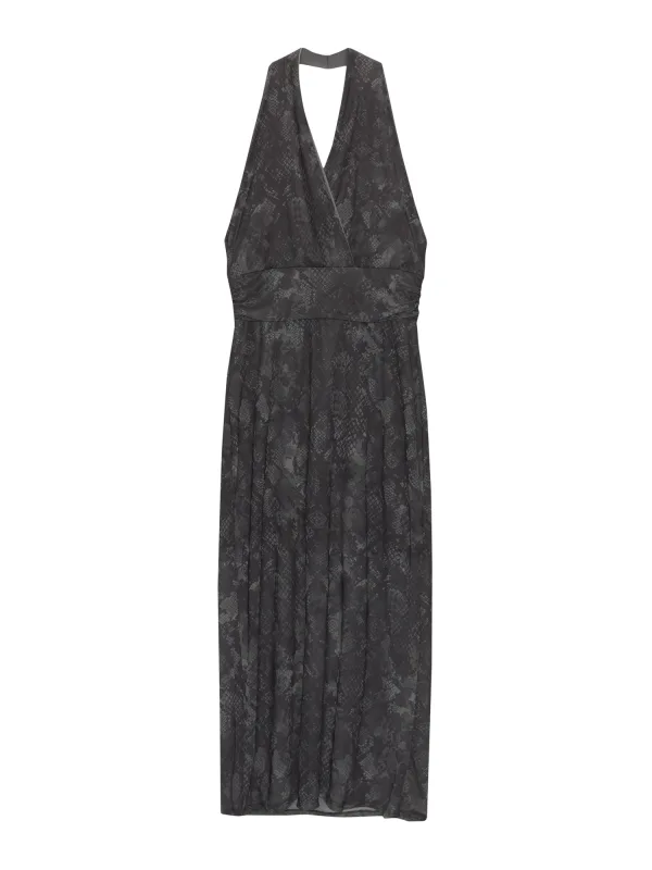 Design: Gevoerde zoom/rand, Met onderjurk, Diepe snit/decolleté; Halstype: V-hals; Motief: Dierenprint; Soort bandjes: Haltermodel; Details: Gedrapeerd, Backless; Extra's: Licht transparant, All-over patroon; Lengte: 3/4 lengte; Snit: Getailleerd; Pasvorm: Slanke pasvorm; Armlengte: Mouwloos