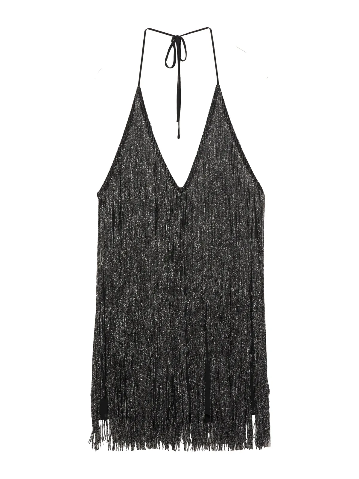 Design: Gevoerde zoom/rand, Rechte zoom; Halstype: V-hals; Motief: Effen; Soort bandjes: Haltermodel; Extra's: Glinsterend, Op staal naden; Lengte: Knielengte; Pasvorm: Normale pasvorm; Armlengte: Mouwloos
