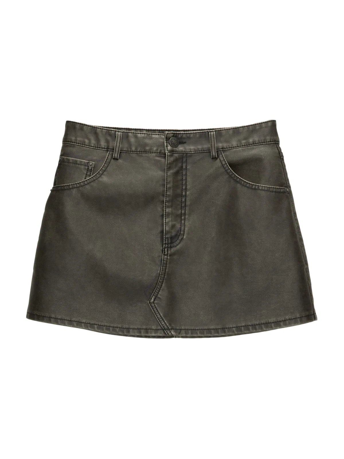 Design: Gevoerde zoom/rand; Type sluiting: Ritssluiting; Materiaal: Imitatieleder; Motief: Effen; Extra's: Op staal naden; Lengte: Kort/mini; Pasvorm: Normale pasvorm