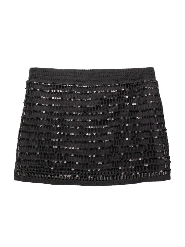 Design: Elastische taille/zoom, Met onderrok; Materiaal: Gehaakt; Motief: Effen; Rokvorm: Minirok; Details: Pailletten; Extra's: Glitterend, Licht transparant, Applicaties; Lengte: Kort/mini; Pasvorm: Normale pasvorm