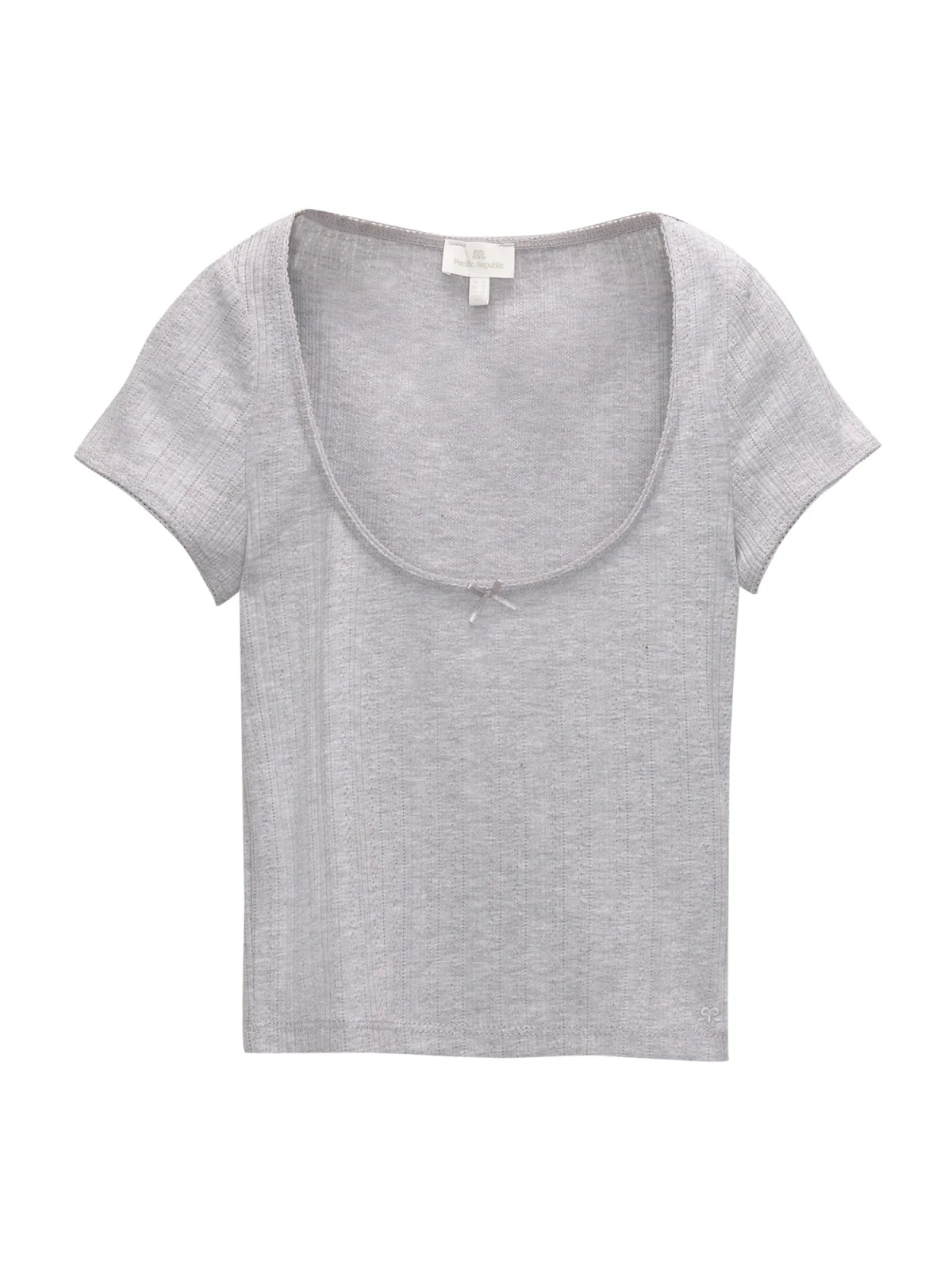 Design: Gevoerde zoom/rand, Rechte zoom, Overige kragen; Materiaal: Jersey; Halstype: Boothals; Motief: Mélange; Details: Kant, Mesh; Extra's: Op staal naden, Voelt zacht aan; Pasvorm: Slanke pasvorm; Armlengte: Kwartmouw; Lengte: Korte pasvorm