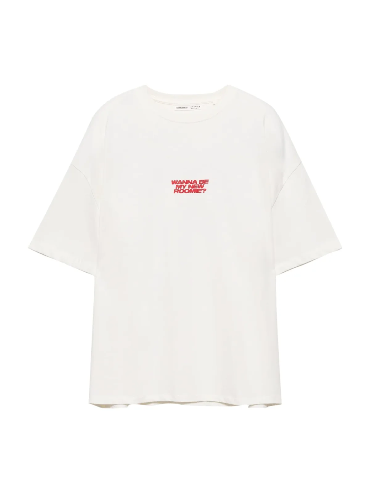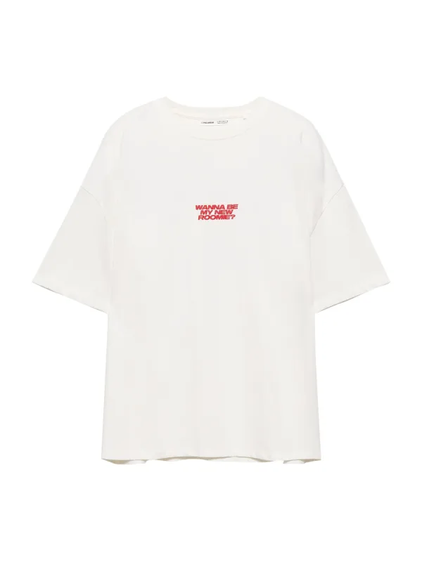 Design: Gevoerde zoom/rand, Geribbelde kraag, Rechte zoom, Overcut schouder, Nektape; Materiaal: Jersey; Halstype: Ronde hals; Motief: Tekst print; Extra's: Op staal naden, Voelt zacht aan, Huidvriendelijk materiaal; Pasvorm: Losse pasvorm; Armlengte: Kwartmouw; Lengte: Normale lengte