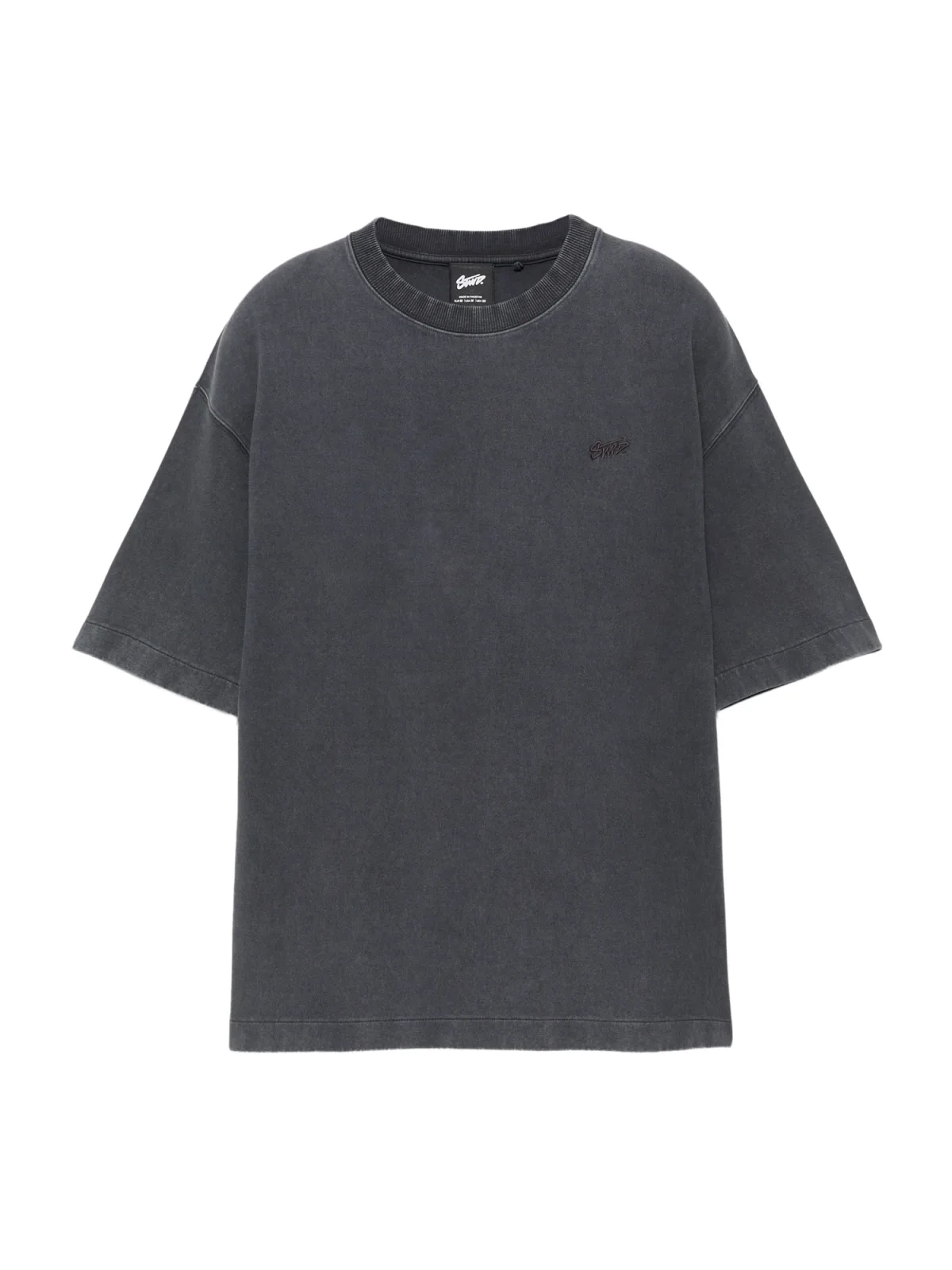 Design: Geribbelde kraag, Overcut schouder; Materiaal: Jersey; Halstype: Ronde hals; Motief: Effen; Extra's: Garment dyed, Op staal naden; Pasvorm: Losse pasvorm; Armlengte: Halve mouw; Lengte: Normale lengte